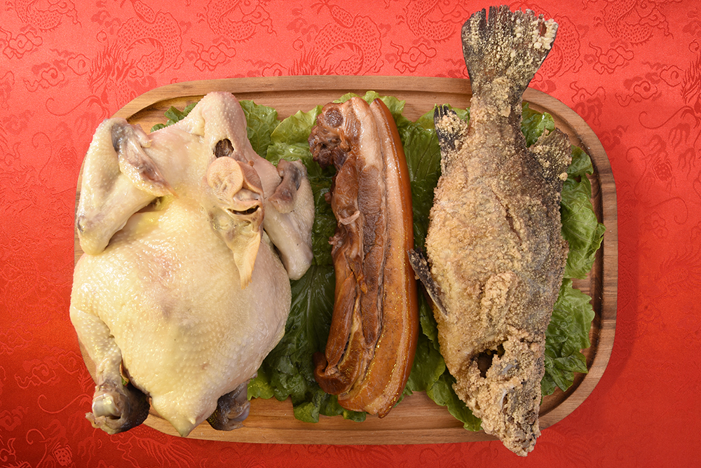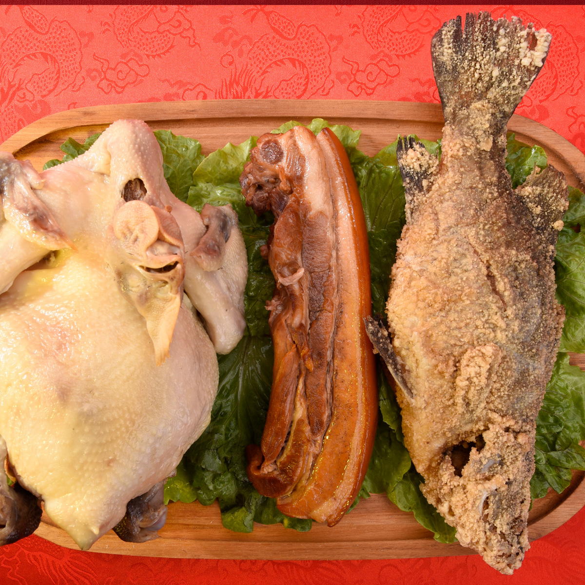 一套備齊全雞、五花、全魚,嚴選台灣在地食材,以職人火候封存傳統手藝,為您的祭拜增添最莊重的禮數。